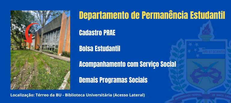 Em caso de dúvida sobre Cadastro Socioeconômico, Bolsa Estudantil, Auxílio Moradia e Demais Auxílios, favor contatar nosso Portal de Atendimento: http://atendimento.ufsc.br/ >> PRAE >> ASSISTÊNCIA ESTUDANTIL ou COAD ou DeAE ou RU.